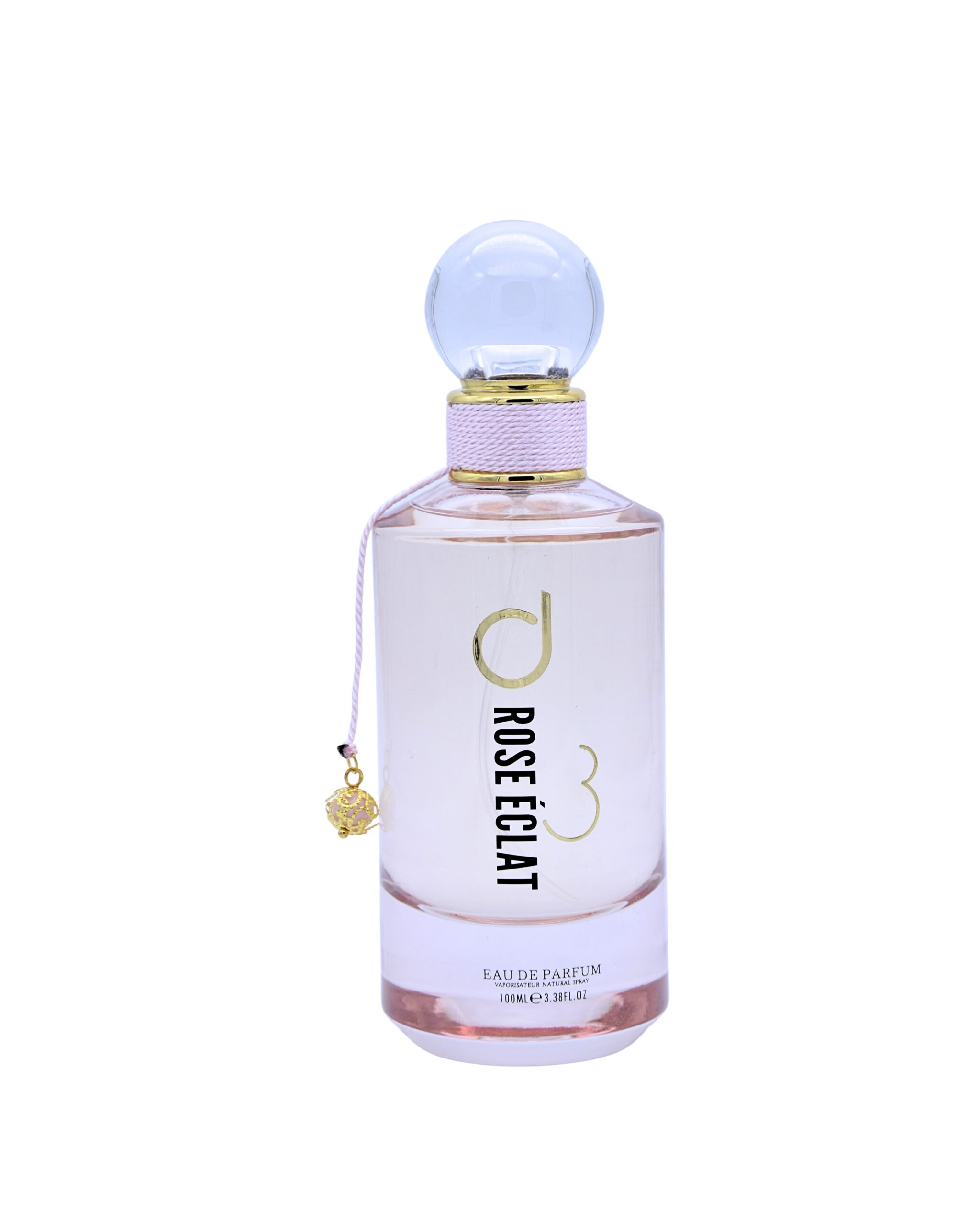 the soft blush tone of the bottle reflects its personality. clean glass. gold accents. minimal design with a subtle charm detail. it looks as refined as it smells.